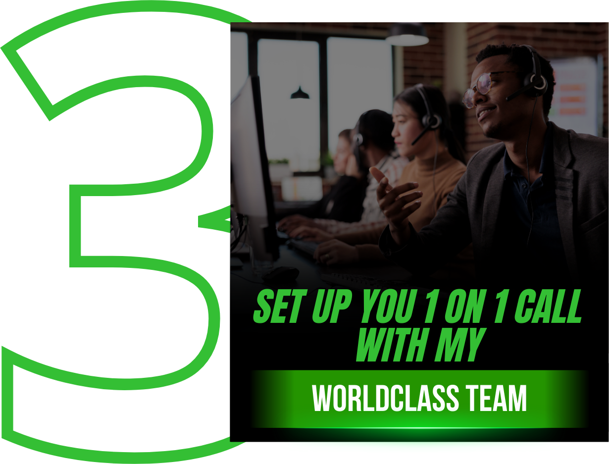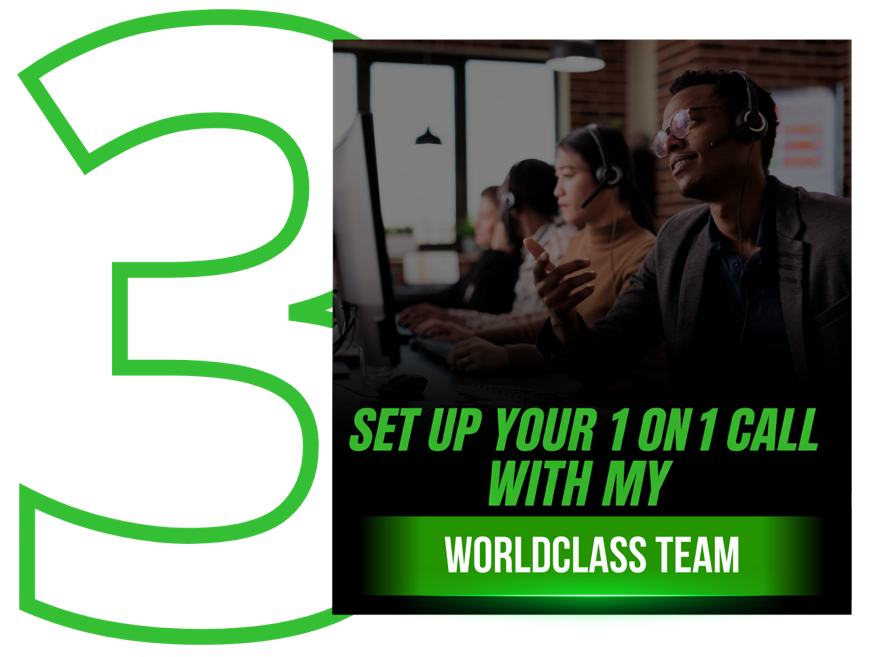 SET UP YOU 1 ON 1 CALL WITH MY WORLDLASS TEAM