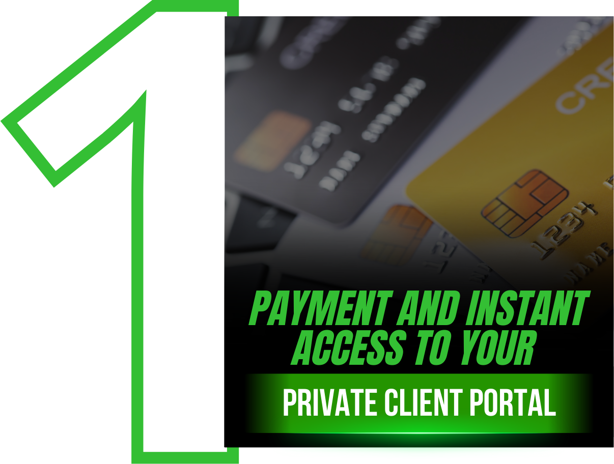PAYMENT AND INSTANT ACCESS TO YOUR PRIVATE CLIENT PORTAL