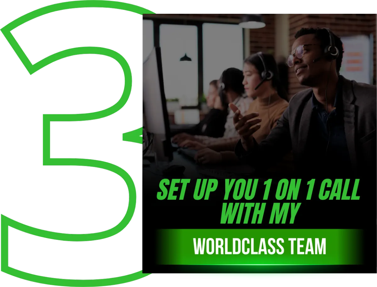 SET UP YOU 1 ON 1 CALL WITH MY WORLDLASS TEAM